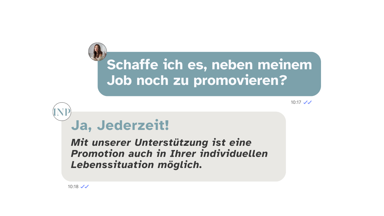 Egal, ob Sie ihre Promotion nebenberuflich schreiben oder sich in Elternzeit befinden – wir helfen Ihnen dabei, Ihrem Ziel Schritt für Schritt näher zu kommen.